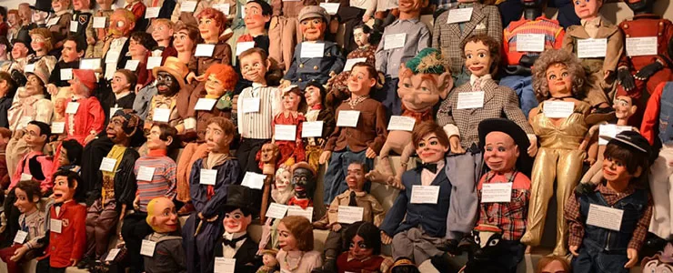 این عروسک های سخنگو با دهان های گشاد و صورت های کج و معوج علی رغم اینکه شبیه شخصیت های آشنای فیلم های ترسناک هستند وقتی در قرن 18 ام میلادی برای ایجاد سرگرمی در تالار موسیقی گرد آوری شدند قرار نبود تا این اندازه ترسناک باشند. این موزه بزرگترین مجموعه مجسمه ها و آدمک های سخنگو در دنیا می باشد. زمانی متعلق به ویلیام شکسپیر برگر یعنی رئیس سابق انجمن بین المللی پانتومیم کاران بود.